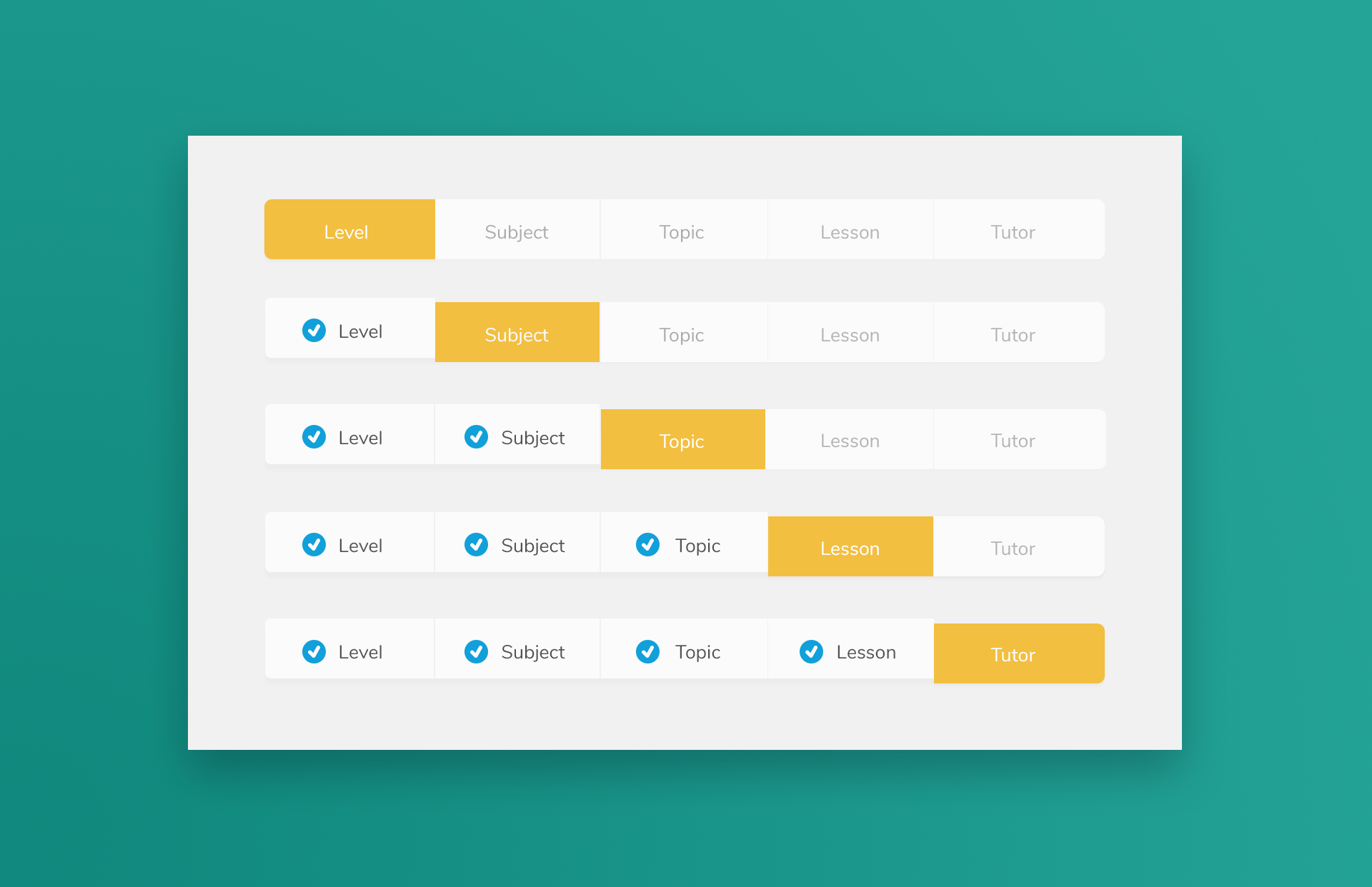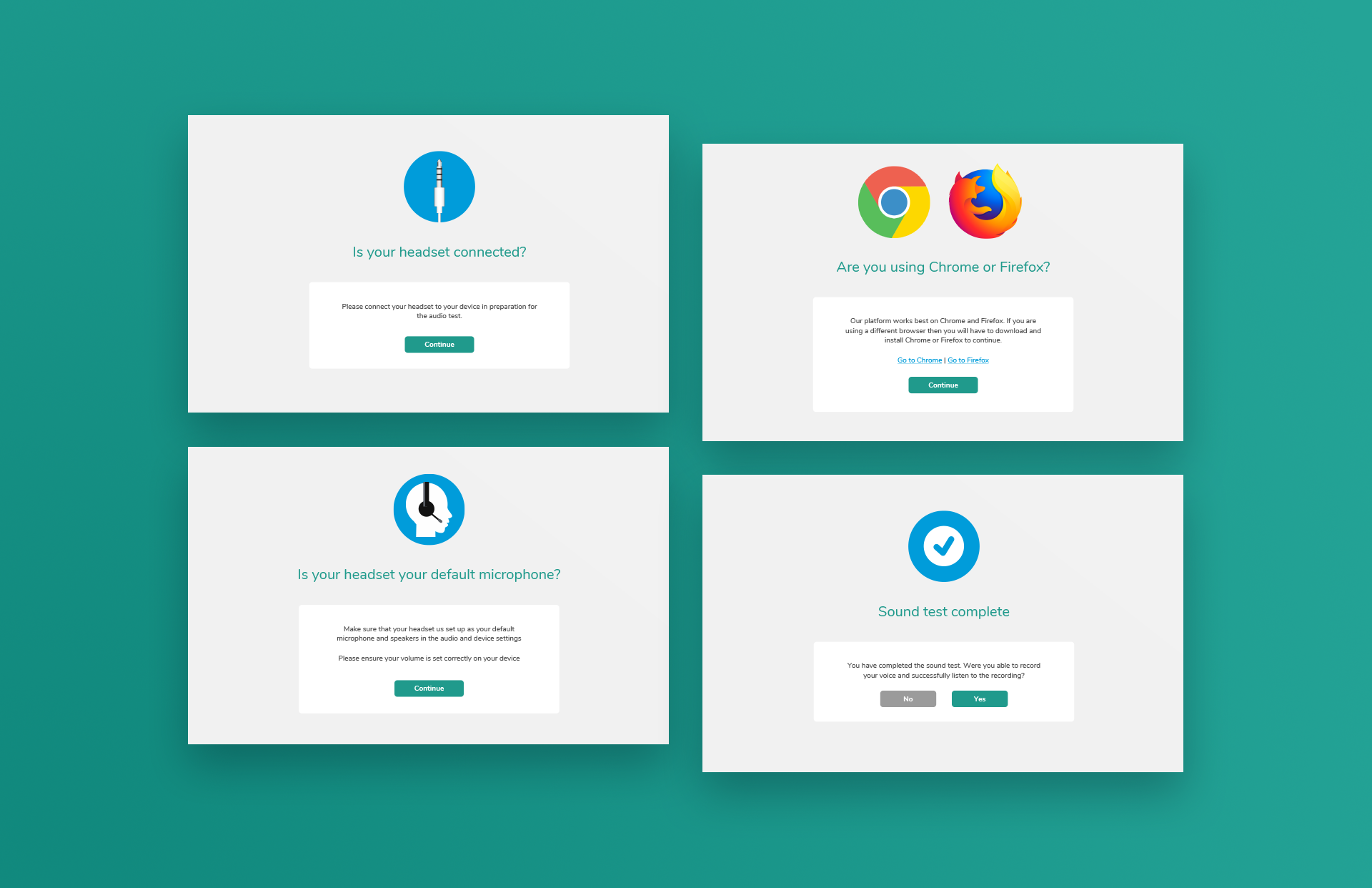 The design of the system is centred around breaking down processes, such as verifying learners and booking sessions, into a series of steps with progress displayed clearly.